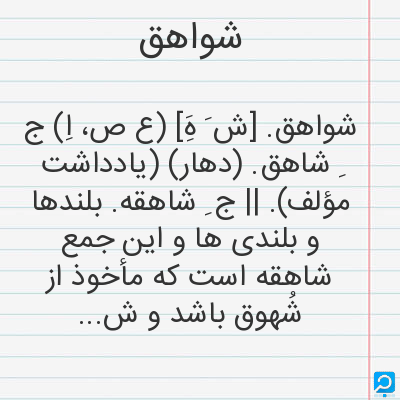 شواهق در فرهنگ لغات ها (دهخدا،معین و ... ) + سایر منابع اطلاعاتی
