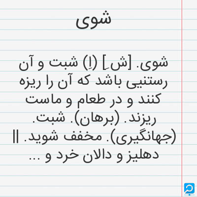 شوی در فرهنگ لغات ها (دهخدا،معین و ... ) + سایر منابع اطلاعاتی