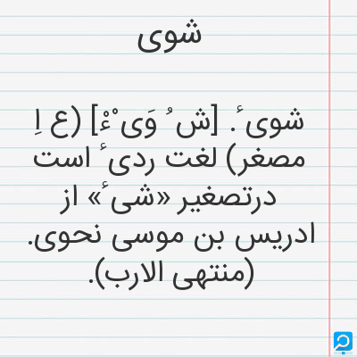 شوی ٔ. [ش ُ وَی ْءْ] (ع اِ مصغر) لغت ردی ٔ است درتصغیر «شی ٔ» از ادریس بن موسی نحوی. (منتهی الارب).