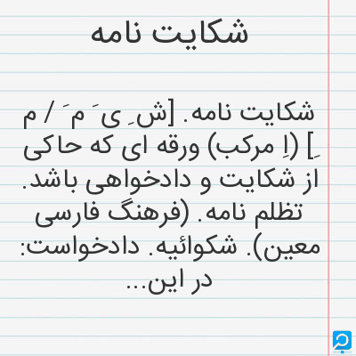 شکایت نامه در فرهنگ لغات ها (دهخدا،معین و ... ) + سایر منابع اطلاعاتی