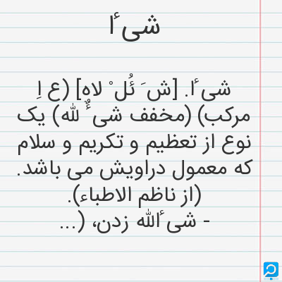 شی ٔا. [ش َ ئُل ْ لاه] (ع اِ مرکب) (مخفف شی ٌٔ ﷲ) یک نوع از تعظیم و تکریم و سلام که معمول دراویش می باشد. (از ناظم الاطباء).