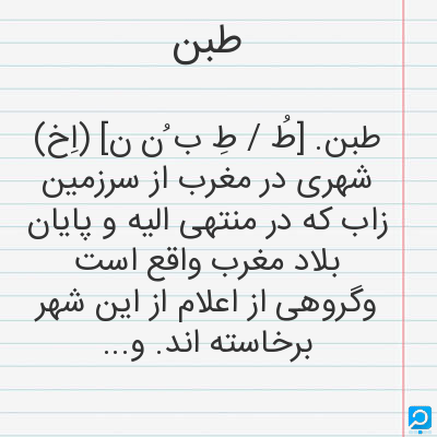 طبن در فرهنگ لغات ها (دهخدا،معین و ... ) + سایر منابع اطلاعاتی