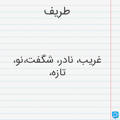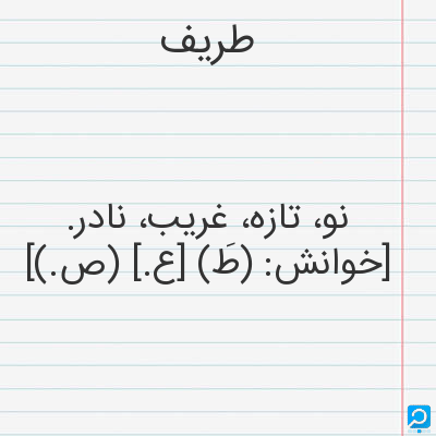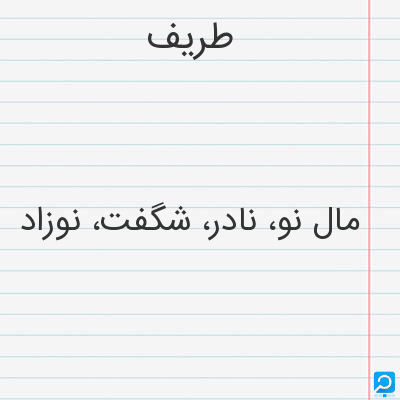 نو، تازه، غریب، نادر. [خوانش: (طَ) [ع.] (ص.)]