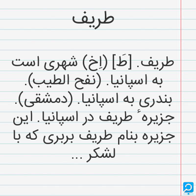 طریف. [طَ] (اِخ) شهری است به اسپانیا. (نفح الطیب). بندری به اسپانیا. (دمشقی). جزیره ٔ طریف در اسپانیا. این جزیره بنام طریف بربری که با لشکر اسلام در جنگ با اندلسیان همراه و در فتوحات نیز با آنان سهیم بوده نامیده شده است. رجوع به الحلل السندسیه ج 1 ص 32، 36، 200 و ج 2 ص 250، 253، 288، 313، 314، 316، 318، 319 شود.