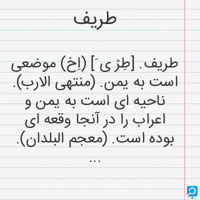 طریف. [طِرْ ی َ] (اِخ) موضعی است به یمن. (منتهی الارب). ناحیه ای است به یمن و اعراب را در آنجا وقعه ای بوده است. (معجم البلدان).