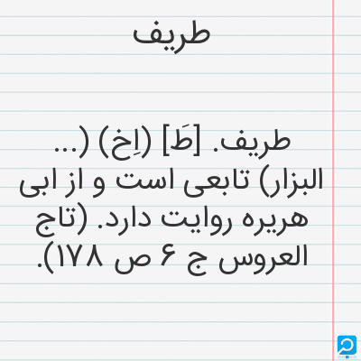 طریف. [طَ] (اِخ) (... البزار) تابعی است و از ابی هریره روایت دارد. (تاج العروس ج 6 ص 178).