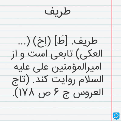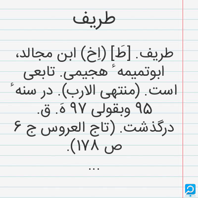 طریف. [طَ] (اِخ) بدون ذکری از پدر یا نسب وی. یکی از تابعیان و ازابن عباس صاحب روایت است. (تاج العروس ج 6 ص 178).