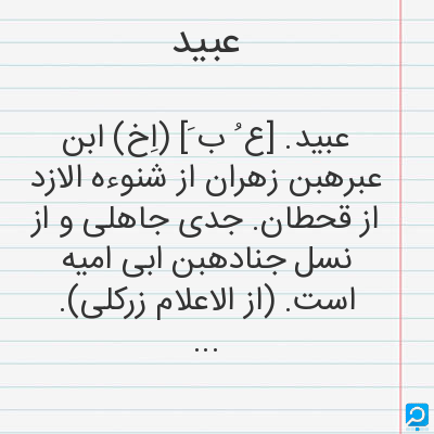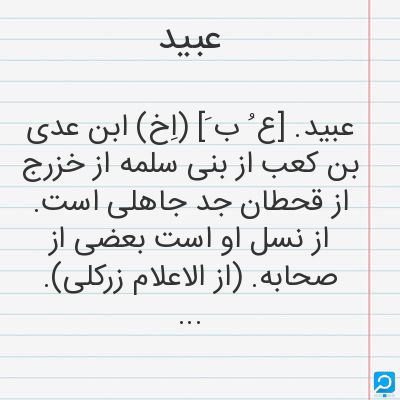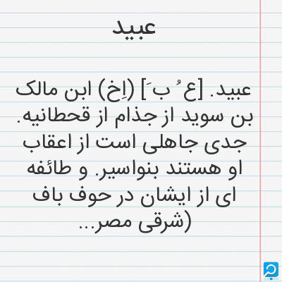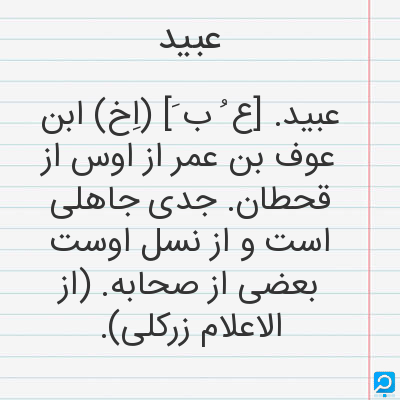 عبید در فرهنگ لغات ها (دهخدا،معین و ... ) + سایر منابع اطلاعاتی