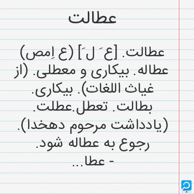 عطالت در فرهنگ لغات ها (دهخدا،معین و ... ) + سایر منابع اطلاعاتی