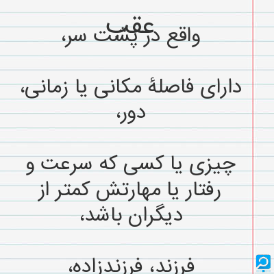 عقب در فرهنگ لغات ها (دهخدا،معین و ... ) + سایر منابع اطلاعاتی
