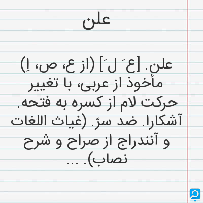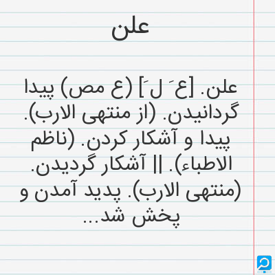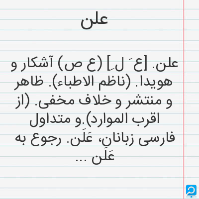 علن در فرهنگ لغات ها (دهخدا،معین و ... ) + سایر منابع اطلاعاتی