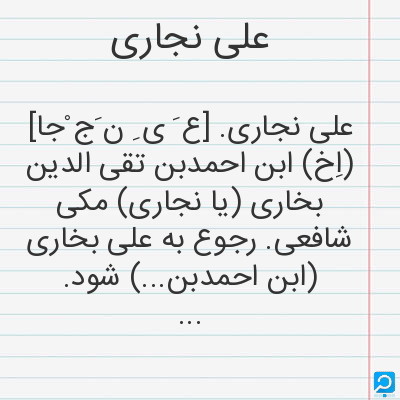 علی نجاری. [ع َ ی ِ ن َج ْجا] (اِخ) ابن احمدبن تقی الدین بخاری (یا نجاری) مکی شافعی. رجوع به علی بخاری (ابن احمدبن...) شود.