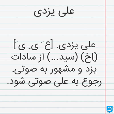 علی یزدی. [ع َ ی ِ ی َ] (اِخ) (سید...) از سادات یزد و مشهور به صوتی. رجوع به علی صوتی شود.