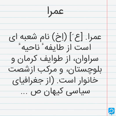 عمرا. [ع َ] (اِخ) نام شعبه ای است از طایفه ٔ ناحیه ٔ سراوان، از طوایف کرمان و بلوچستان، و مرکب ازشصت خانوار است. (از جغرافیای سیاسی کیهان ص 98).