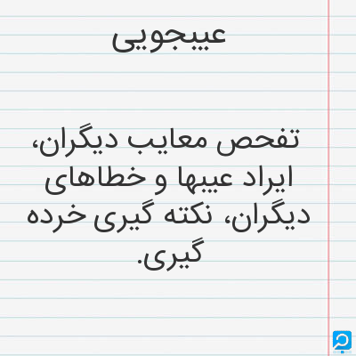 تفحص معایب دیگران، ایراد عیبها و خطاهای دیگران، نکته گیری خرده گیری.
