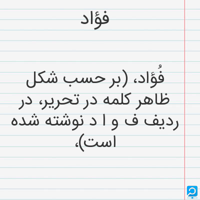 فُؤاد، (بر حسب شکل ظاهر کلمه در تحریر، در ردیف ف و ا د نوشته شده است)،