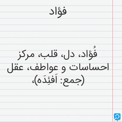 فُؤاد، دل، قلب، مرکز احساسات و عواطف، عقل (جمع: اَفئِدَه)،
