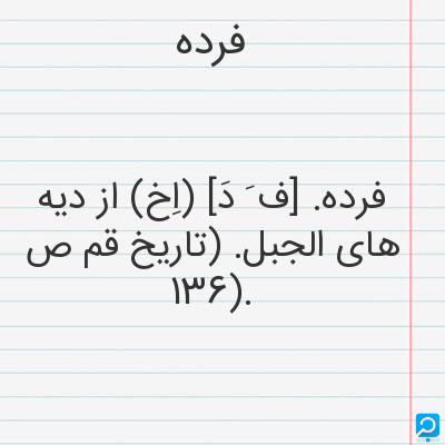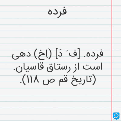 فرده. [ف َ دَ] (اِخ) دهی است از رستاق قاسیان. (تاریخ قم ص 118).