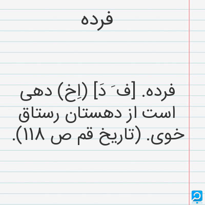 فرده. [ف َ دَ] (اِخ) دهی است از دهستان رستاق خوی. (تاریخ قم ص 118).
