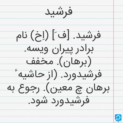 فرشید. [ف َ] (اِخ) نام برادر پیران ویسه. (برهان). مخفف فرشیدورد. (از حاشیه ٔ برهان چ معین). رجوع به فرشیدورد شود.