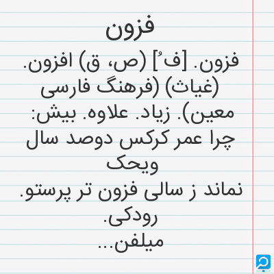 فزون در فرهنگ لغات ها (دهخدا،معین و ... ) + سایر منابع اطلاعاتی