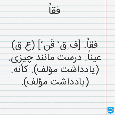 فقاً. [ف ِق ْ قَن ْ] (ع ق) عیناً. درست مانند چیزی. (یادداشت مؤلف). کأنه. (یادداشت مؤلف).