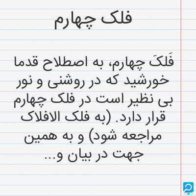 فَلکَ چهارم، به اصطلاح قدما خورشید که در روشنی و نور بی نظیر است در فلک چهارم قرار دارد. (به فلک الافلاک مراجعه شود) و به همین جهت در بیان واضح و روشن بودن هر مطلب یا امری به خورشید در فلک چهارم مثال می زنند (به " هفت فلک و هفت آسمان... " نیز مراجعه شود)