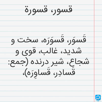 قَسوَر، قَسوَرَه، سخت و شدید، غالب، قوی و شجاع، شیر درنده (جمع: قَسادِر، قَساوِرَه)،