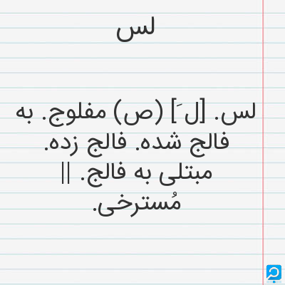 لس. [ل َ] (ص) مفلوج. به فالج شده. فالج زده. مبتلی به فالج. || مُسترخی.