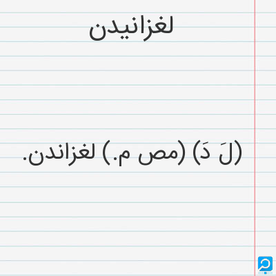 لغزانیدن. [ل َ دَ] (مص) لخشانیدن. ازلال. (مجمل اللغه). ازلاق. (منتهی الارب). استزلال. (زوزنی). و رجوع به فرولغزانیدن شود: آفریدگار تبارک و تعالی رطوبتی لزج آفریده است اندرون روده ها و بر سطح روده اندوده تا درشتی ثقل و تیزی اخلاط را که بر وی میگذرد از وی بازدارد و آن را زود دفع کند و بلغزاند. (ذخیره ٔ خوارزمشاهی). دَلق، بیرون کردن شمشیر از نیام و لغزانیدن. ادحاض، لغزانیدن پای. (منتهی الارب).