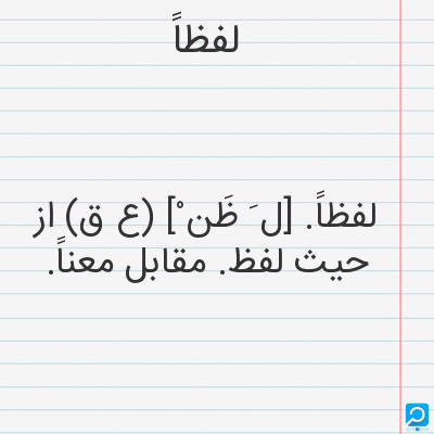 لفظاً. [ل َ ظَن ْ] (ع ق) از حیث لفظ. مقابل معناً.