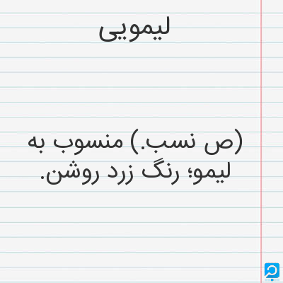 (صفت) منسوب به لیمو: رنگ زرد و روشن: چهره ام دور از بهار خطش شد خزان همچو رنگ لیمویی. (مفید بلخی آنند. لغ. ) توضیح کمی رنگ زرد را با آب مخلوط کنند لیمویی باز بدستظید و اگر یک قلم مو فیروزه یی بان بزنند لیمویی خوشرنگ حاصل شود.