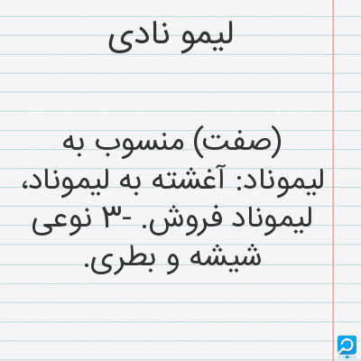 (صفت) منسوب به لیموناد: آغشته به لیموناد، لیموناد فروش. -3 نوعی شیشه و بطری.