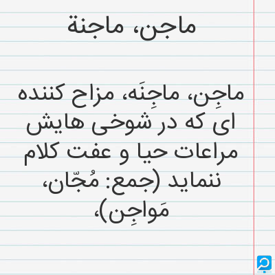 ماجِن، ماجِنَه، مزاح کننده ای که در شوخی هایش مراعات حیا و عفت کلام ننماید (جمع: مُجّان، مَواجِن)،