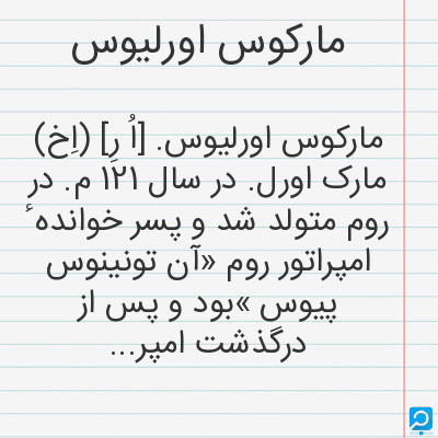 مارکوس اورلیوس. [اُ رِ] (اِخ) مارک اورل. در سال 121 م. در روم متولد شد و پسر خوانده ٔ امپراتور روم «آن تونینوس پیوس »بود و پس از درگذشت امپراتور در سال 161 م. به امپراتوری روم رسید و تا سال 180 م. امپراتور روم بود اودر جنگ بابربرها و پارتها و ژرمنها و سارمانها موفقیت هائی بدست آورد و پسرش را در قدرت با خود سهیم ساخت و فرزند پذیری را که بصورت اصلی درآمده بوده رها ساخت. اندیشه هایش را به زبان یونانی به رشته ٔ تحریر در آورد و چشم انداز مکتب رواقیون را در این نوشته جلوه گر ساخت. (از لاروس). و رجوع به ایران باستان شود.