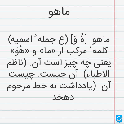 ماهو در فرهنگ لغات ها (دهخدا،معین و ... ) + سایر منابع اطلاعاتی
