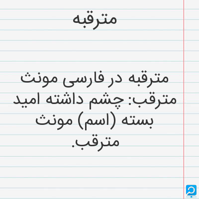 مترقبه در فارسی مونث مترقب: چشم داشته امید بسته (اسم) مونث مترقب.