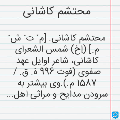 محتشم کاشانی در فرهنگ لغات ها (دهخدا،معین و ... ) + سایر منابع اطلاعاتی
