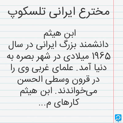دانشمند بزرگ ایرانی در سال 1965 میلادی در شهر بصره به دنیا آمد. علمای غربی وی را در قرون وسطی الحسن میخواندند. ابن هیثم کارهای مهمی در زمینه نور شناسی انجام داده است و دانشمندان بعدی با استناد به گفتههای وی به نتیجههای بالاتری دست یافتند. گر چه کار ابن هیثم در نور شناسی محتوی عناصر یونانی بویژه از بطلیموس است، اما او همه چیز را به گونهای از نو بررسی کرده است. نظرات او در باب نور و دید تماما از آن خود اوست و مطلقا چیزی به افکار عتیق و یا عقاید اسلامی پیشین بدهکار نیست.