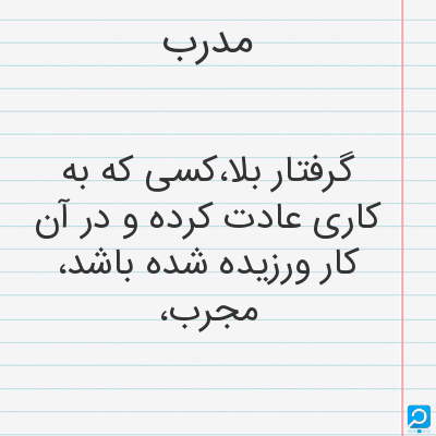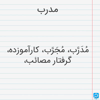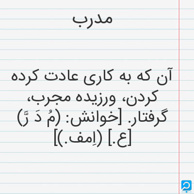 آن که به کاری عادت کرده کردن، ورزیده مجرب، گرفتار. [خوانش: (مُ دَ رَّ) [ع.] (اِمف.)]