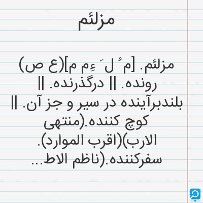 مزلئم. [م ُ ل َ ءِم م](ع ص) رونده. || درگذرنده. || بلندبرآینده در سیر و جز آن. || کوچ کننده.(منتهی الارب)(اقرب الموارد). سفرکننده.(ناظم الاطباء). || ثابت و برجای.(منتهی الارب).