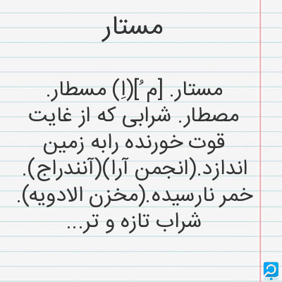 مستار. [م ُ](اِ) مسطار. مصطار. شرابی که از غایت قوت خورنده رابه زمین اندازد.(انجمن آرا)(آنندراج). خمر نارسیده.(مخزن الادویه). شراب تازه و ترش.(ناظم الاطباء).