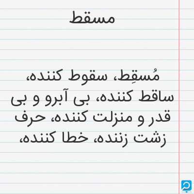 مُسقِط، سقوط کننده، ساقط کننده، بی آبرو و بی قدر و منزلت کننده، حرف زشت زننده، خطا کننده،