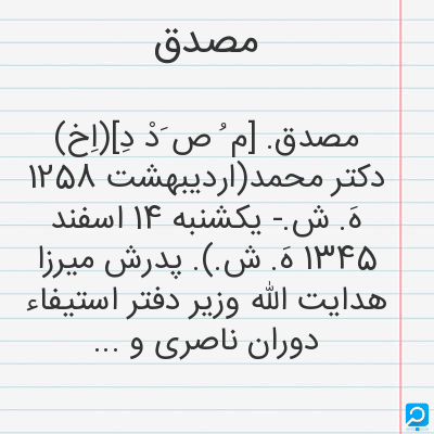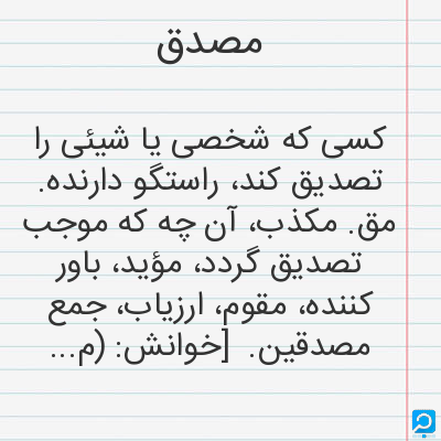 مصدق در فرهنگ لغات ها (دهخدا،معین و ... ) + سایر منابع اطلاعاتی