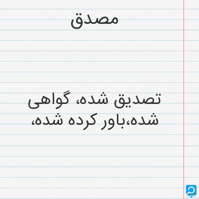 مصدق. [م ُ ص َدْ دَ](ع ص) استوار.(یادداشت مؤلف). محقق. تصدیق شده. به راستی گواهی شده: