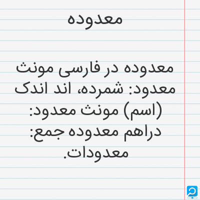 معدوده در فارسی مونث معدود: شمرده، اند اندک (اسم) مونث معدود: دراهم معدوده جمع: معدودات.