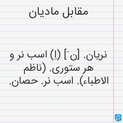 نریان. [ن َ] (اِ) اسب نر و هر ستوری. (ناظم الاطباء). اسب نر. حصان.