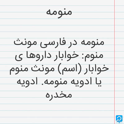منومه در فارسی مونث منوم: خوابار داروها ی خوابار (اسم) مونث منوم یا ادویه منومه. ادویه مخدره