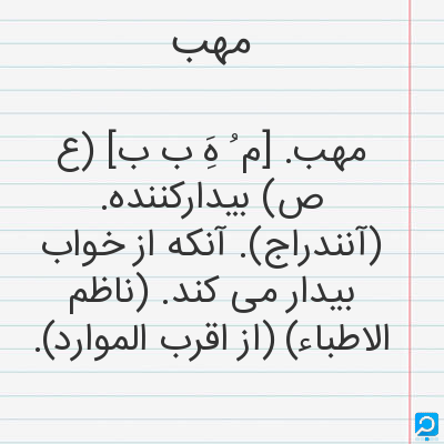 مهب. [م ُ هَِ ب ب] (ع ص) بیدارکننده. (آنندراج). آنکه از خواب بیدار می کند. (ناظم الاطباء) (از اقرب الموارد).