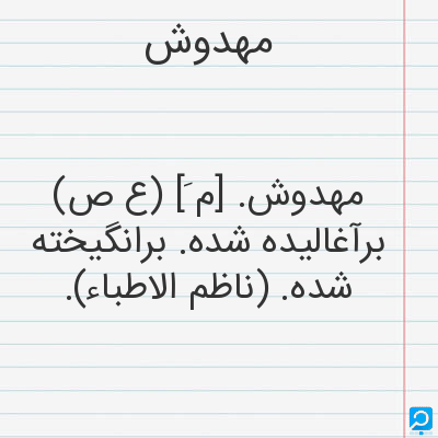 مهدوش. [م َ] (ع ص) برآغالیده شده. برانگیخته شده. (ناظم الاطباء).